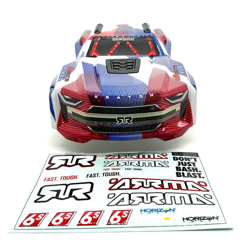 ARA-3009 - 1/8 Painted Body with Decals, Red White Blue: KRATON 6S BLX V6